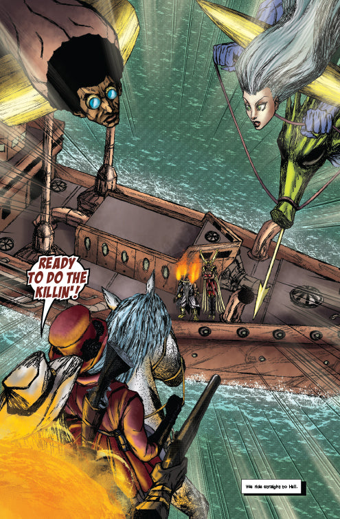 In Last Ride of the 4 Horsemen: Tribulation 2, Cager Dobbin - in his new role as the Horseman Death - leads his own congregation of four horsemen against the very purveyors of the Steampunk Apocalypse in the ultimate tour of vengeance. As these four broken, violent souls descend on the planet that holds these monsters, can they remain a force with one, single-minded goal, or will the wily, omnipotent beings that manipulate them splinter the whole into four warring horsemen?