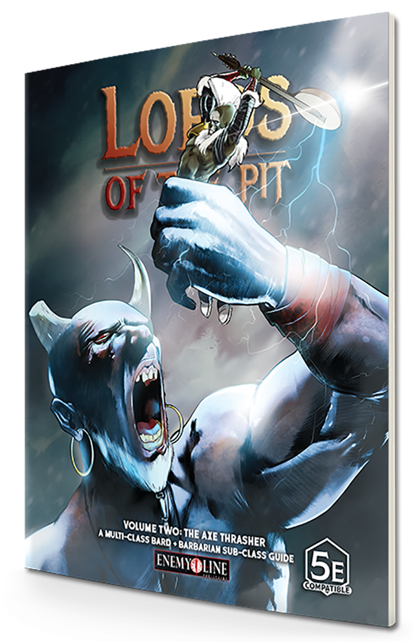 Lords of the Pit Volume Two: The Axe Thrasher is a 24-page, comprehensive guide to using the 5E multi-classing rules to build a lute-smashing engine of blunt force trauma by weaving together the Bard and Barbarian classes. Put down your battle axe, pick up your lute, and slam it into foes for epic damage! Includes: