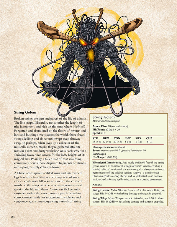 - 10 new strings-themed magic items like Back Mask and Electric Lute