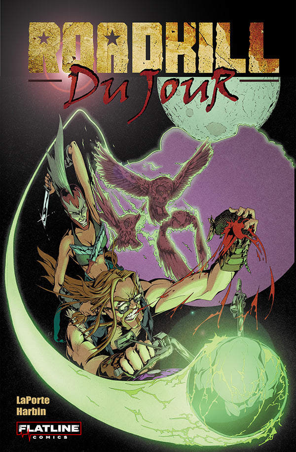 Roadkill du Jour is a full-length graphic novel crafted by writer Kevin LaPorte (Vicious Circus; Scissor Sisters; The Absentee; Last Ride for Horsemen), artist Shawn Harbin and colorists Laura Guzzo (Action Labs’ PrinceLess) and Yuan Cakra. 88 pages.