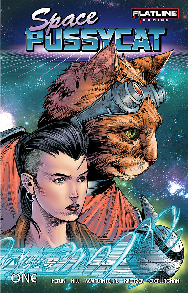 Space Pussycat is a 4-issue, 80-page comic series written by Erica J. Heflin (Zenescope's Wonderland & Dark Shaman) and illustrated by Sean Hill (Dark Shaman) with colors by Omi Remalante, Jr. The book is available in multiple cover formats, including standard (glossy cardstock covers), raw (no logos) editions, and spot UV embossed editions with raised areas on the logo and key cover elements!