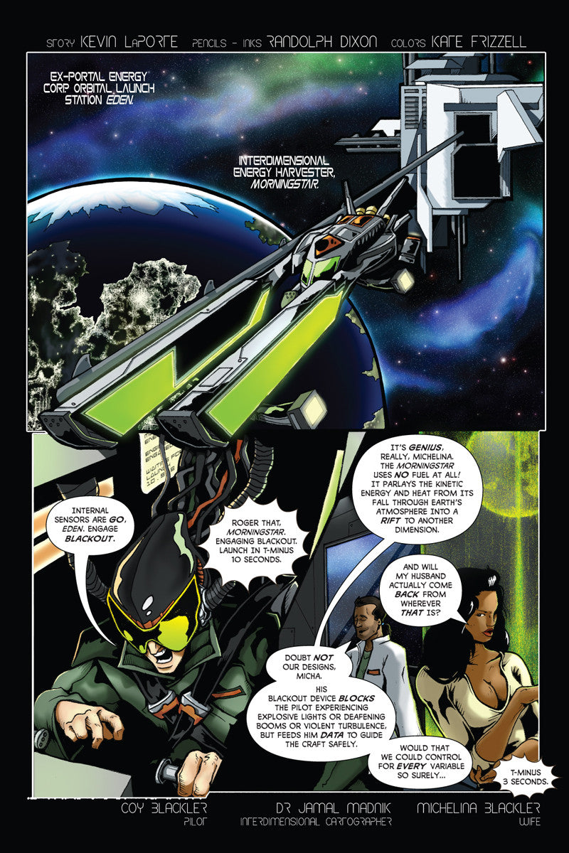 The Absentee is a 128-page cosmic horror graphic novel, written by Kevin LaPorte (Vicious Circus, Last Ride for Horsemen), with art by Rando Dixon and colors by Kate Frizzell and Vito Potenza. Cover by Rando Dixon and colorist Gavin Michelli.