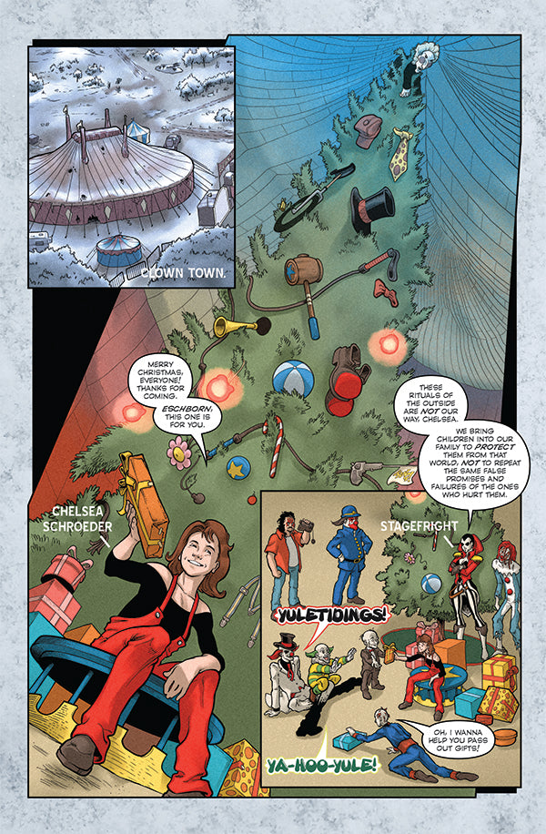 The Vicious Circus 2021 Christmas Special is a 24-page, self-contained tale of your favorite anti-hero killer clowns, running amok through the holiday season right alongside Santa himself. The Christmas Special is written by Vicious Circus co-creator Kevin LaPorte and illustrated by Carlos Tron, with colors by Daniele Caramanico (the art team from Squared Circle Comics' Hollywood).